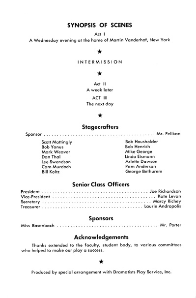 | May 1967 | All School Play Arsenic and Old Lace |